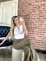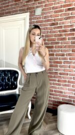 Yüksek bel pantolon, ile tarzınıza sofistike bir dokunuş katın! Bu pantolon, modern kesimi ve vücudu saran formuyla her zaman dikkat çeker. Dolayısıyla, hem iş hayatınızda hem de sosyal davetlerde rahatça giyer, hemen fark yaratırsınız. Hem zarif hem de çağdaş bir görünüm arayanlar için bu pantolon kusursuz bir seçim sunarız. Onu giydiğinizde kendinizi ayrıcalıklı ve kendinden emin hissedersiniz.