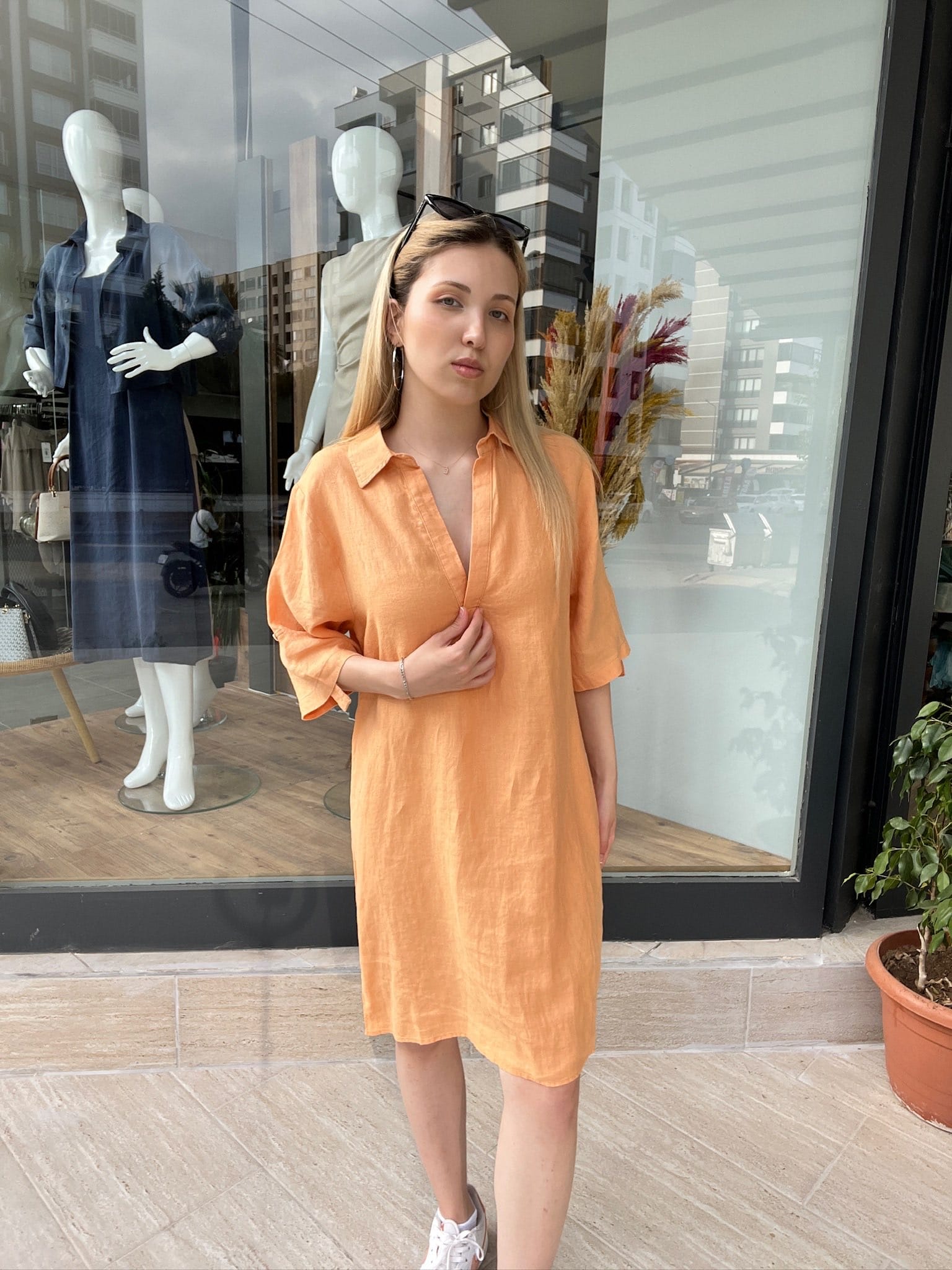 Gömlek yakalı elbise ile hem klasik hem de modern bir şıklık yakalayın! Bu elbise, ikonik gömlek yakası detayını zarif bir kesimle buluşturur. Dolayısıyla, iş hayatınızda, özel davetlerde veya günlük şıklığınızda rahatça giyer, hemen dikkat çekersiniz. Hem sofistike hem de çok yönlü bir parça arayanlar için bu elbise kusursuz bir seçim sunarız. Onu üzerinize giydiğinizde kendinizi ayrıcalıklı ve özgüvenli hissedersiniz.
